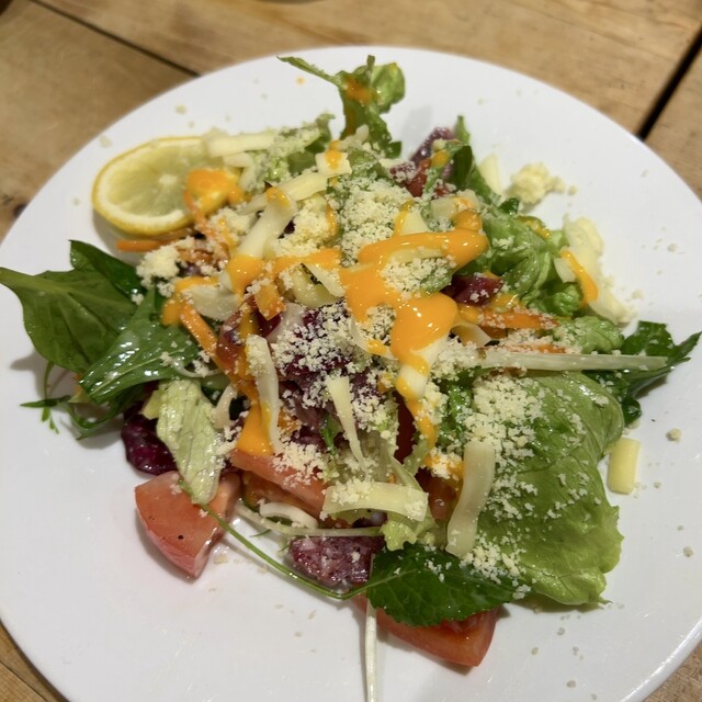 45年以上前の思い出の味を求めてランチに伺った。 コンビーフとピーマンのピザ(ドリンク付き)950円とハンバーグとローストビーフ(サラダ、パンとドリンク付き)1100円を頂いた。 ピザはとにかく生地がとびきり薄くて美味しかった記憶があったのだが、今回あまりその印象は感じられなかった。味もチーズが... 詳細を見る