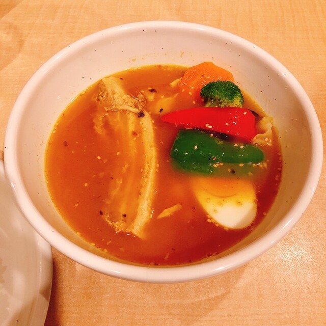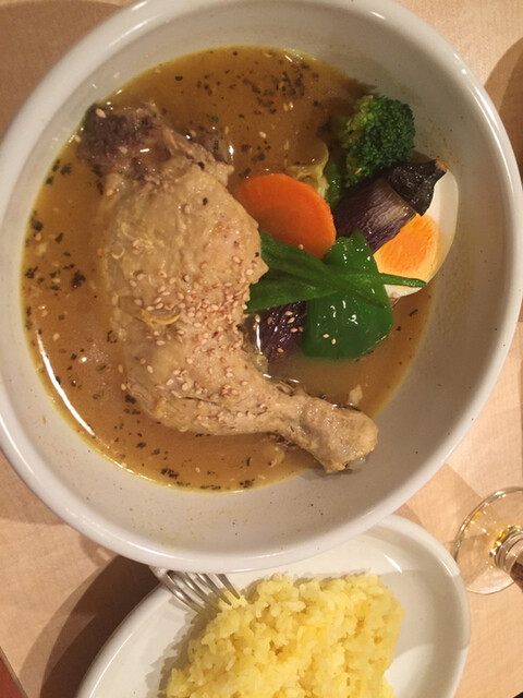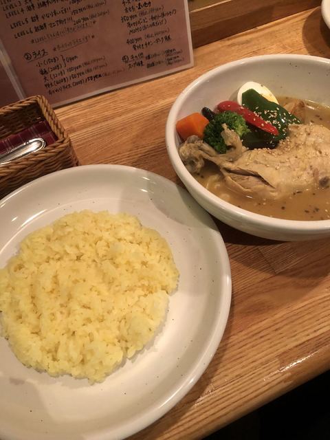週末ランチどき 待たずにすぐ入れましたが 次々人もきますし、人気です。 【注文】 骨付きチキンと野菜のスープカレー 1250円 【感想】 辛さ2を頼... 続きを読む»