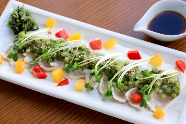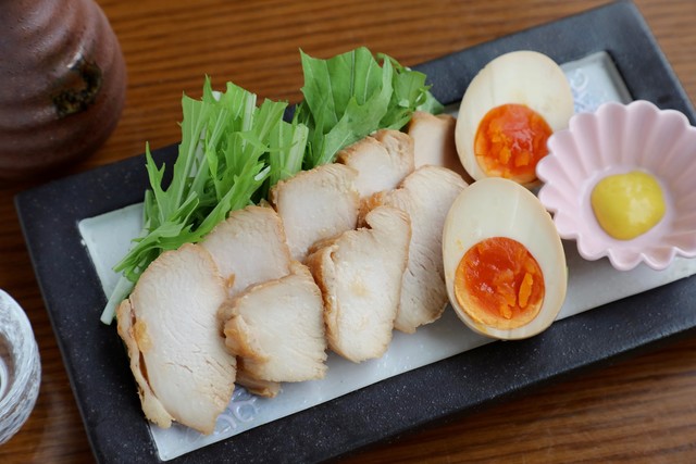 山形地鶏を使った自家製チャーシューと塩ダレユッケは人気です!