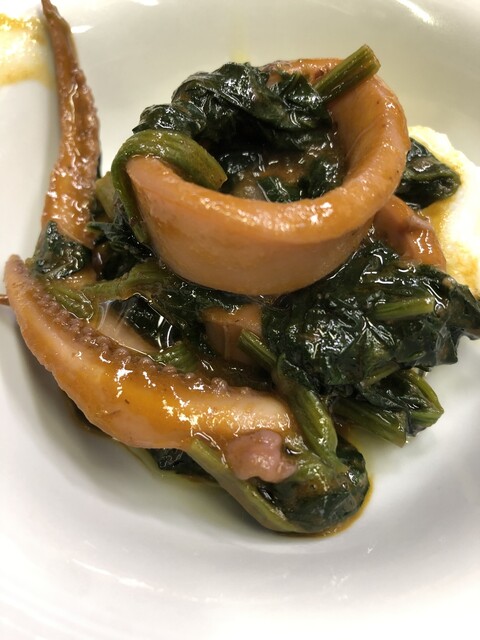 季節限定メニュー ヤリイカとほうれん草の煮込み (by お店)