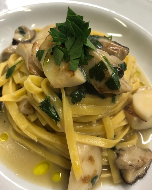 手打ちタリオリーニ フレッシュポルチーニのパスタ (by お店)