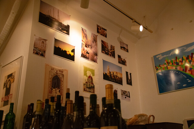 イタリア現地から仕入れたポスターなどの装飾 (by お店)