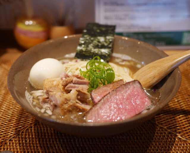 12時過ぎに訪問。丁度店内満席だったので数分待ってから入店。 前回訪問時は注文停止中だった夢に出てきた中華そばを注文。 ラーメン大賞にも掲載されてる念願のメニューをようやく味わ... 詳細を見る