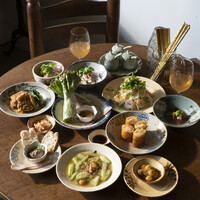 ★ご予約は食べログ店舗ページの「ホームページ」欄に、予約リンクをご用意しています。 A dinner course which you can enjoy our popular menu little by little 当店の人気メニューを少しずつ、色々お召し上がりいただけるディナーコース