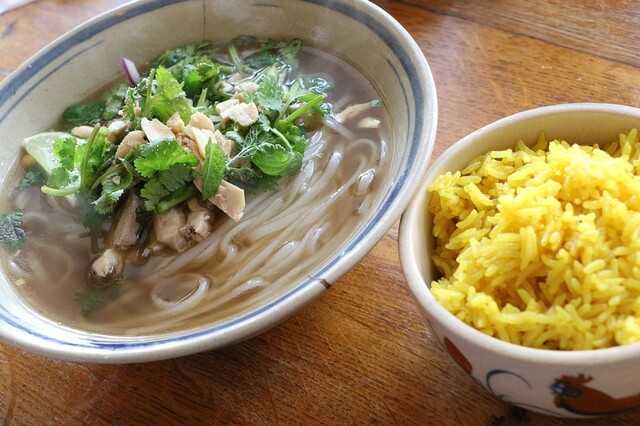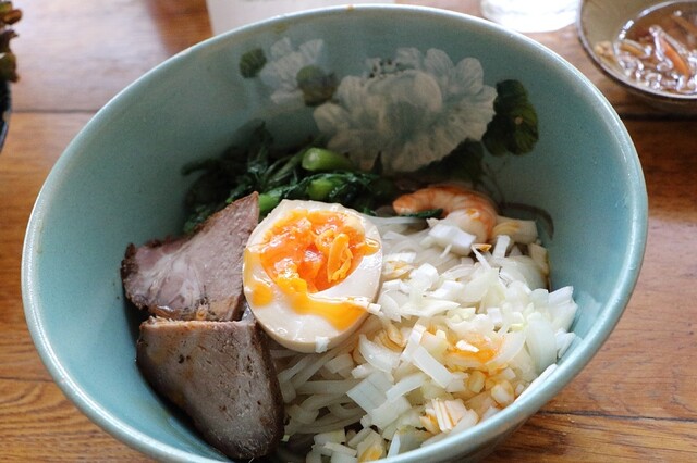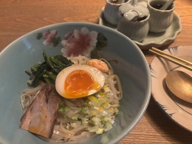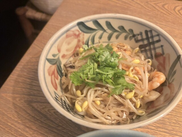 夜、予約を取らず訪問したら、運良く席が空いていたので座れました♪ 予約しない客は、料理とドリンクを必ず一品づつ注文しないとダメとの事でしたので、以下を注文しました。なお、予約すると1人3,000円以上の注文がマストになります。 ・生米麺大山鶏辛みフォー&ターメリックライス ・大山鶏生春... 詳細を見る