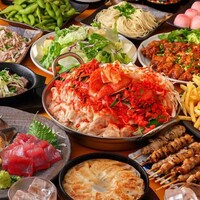 九州各地の名物料理を一度に堪能できる、ボリューム満点のコースです。宮崎名物のチキン南蛮や博多の鉄鍋餃子など、お酒が進む逸品が勢揃い。メインの「和牛もつ鍋」は、特製の濃厚味噌スープで仕上げました。さらにプラス200円で、見た目のインパクトも抜群な「明太もつ鍋」への変更も可能です。
