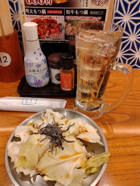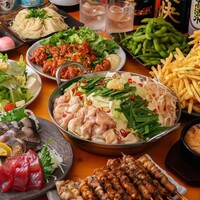 博多名物の「酢もつ」や「鶏皮串」に加え、ジューシーな「牛タンの塩焼き」まで楽しめる贅沢なプランです。メインには、ぷりぷりのモツとピリ辛の明太子が相性抜群の「明太もつ鍋」をご用意しました。〆には明太子の旨味が溶け出したスープで作るチーズリゾットも絶品。ワンランク上の宴会や、大切な方とのお食事におすすめです。