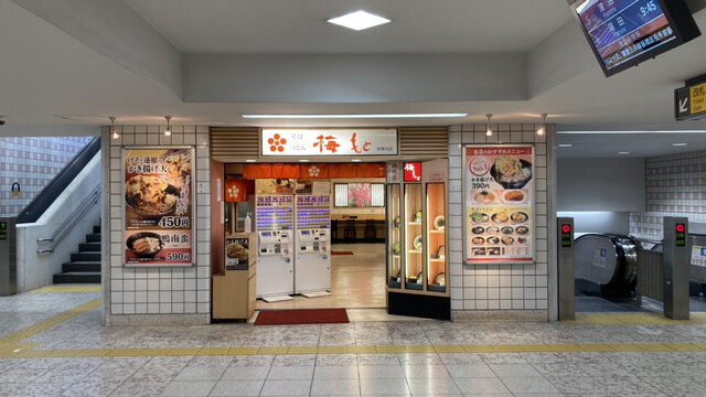 こんな状態でいきなり飲み始めたら、カワユイ胃がビックリしちゃうやないかい。そこでなんか胃に詰め込もうと立ち寄ったのが、乗り換え駅のこちら、梅もとさん。