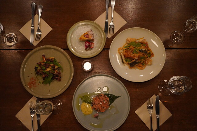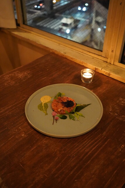 三宿交差点角のビル5F、知る人ぞ知る隠れ家的スポット。所謂カフェ飯とは一線を画した本格洋食に、100種類を超えるお酒も楽しめるバー・レストランです。また、深夜までカフェ利用も可能で、自家製のスウィーツもご提供しております。