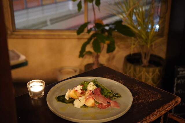 白桃とモッツァレラチーズ、生ハムのサラダ (by お店)