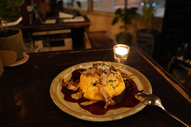 三宿交差点角のビル5F、知る人ぞ知る隠れ家的スポット。所謂カフェ飯とは一線を画した本格洋食に、100種類を超えるお酒も楽しめるバー・レストランです。また、深夜までカフェ利用も可能で、自家製のスウィーツもご提供しております。