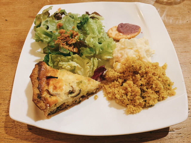 土曜日12時半頃。通りすがりに覗いてみるも良く見えず。「当店はゆっくりランチのお店です」といったことが書かれていてのんびりできそうだったので入店。