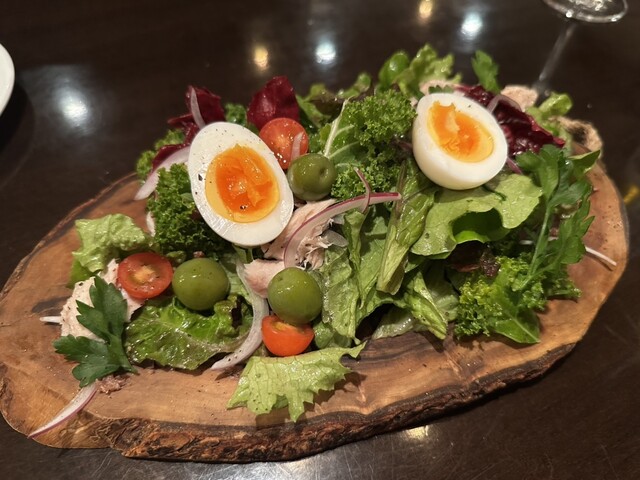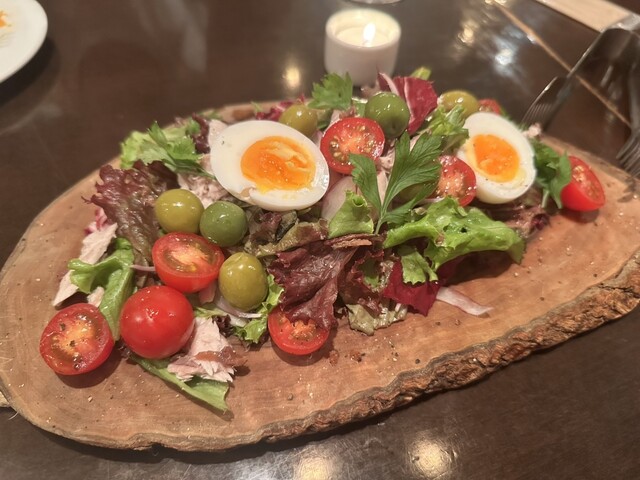 山形・米沢から直送される「無投薬の天元豚」の『天元豚の厚切りロースト』や『自家製ソーセージ』、こだわり野菜をふんだんに使った『ニース風サラダ』など、味にも定評があります。