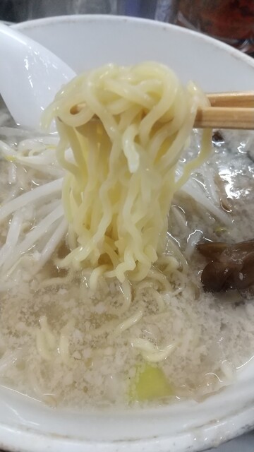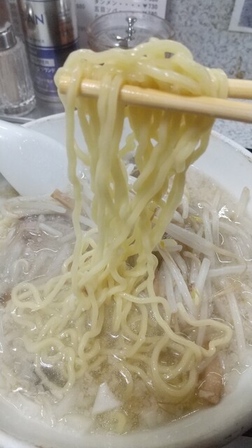 変わらず、たっぷり背脂と玉ねぎともやしの塩スープは甘くエンミもウマミもちょうど良くじんわりと美味しいスープ(^^♪、この味はやさしく好みの味なのは印象変わらずw
