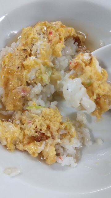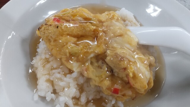 半天津丼は、餡かけが甘酢なのね、香りでむせる感じで予想外