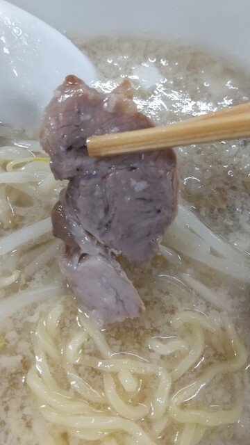 鶏ガラな感じの塩スープはエンミあっさりで背脂のまろやかやさしい味で旨い、背脂、玉ねぎ、きくらげはやはり個性的で独特、醤油タレの染みた豚肩チャーシューもしっかり旨い