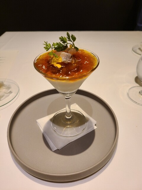 2品目は新玉葱のブラマンジェ。ブリのタルタルと合うんですねえ。