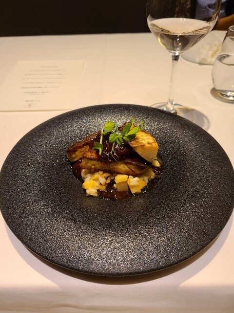 4品目はフォアグラのポアレ。なんと2切れ!筍のリゾットと食感が組み合わさって美味です。