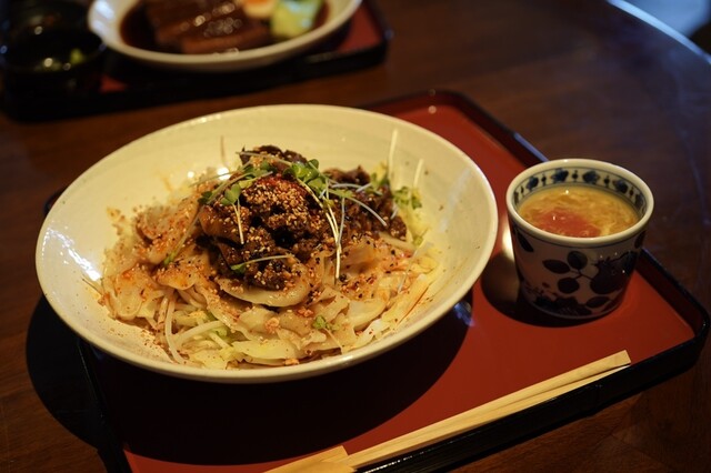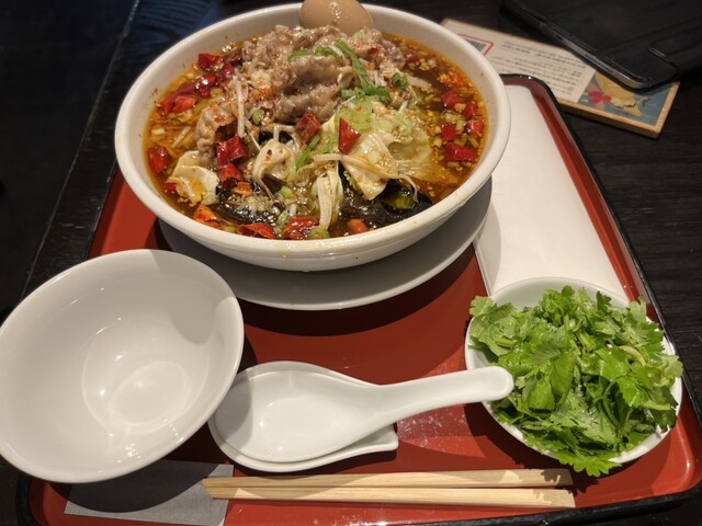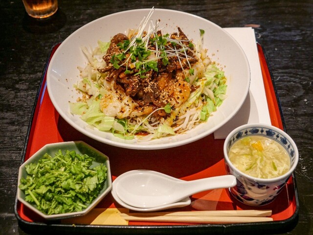 さて、前回ランチで食べられなかったこちらのお店の名物水煮牛肉ビャンビャン麺を今回こそ注文。欲を出して、見たことない酔っぱらい牛も頼んでみました。