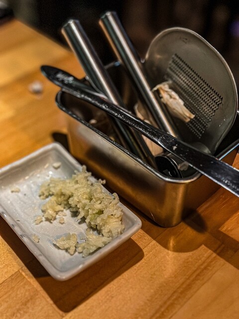 【東京グルメ】 池尻大橋:オカダガーリック 246沿いにあるニンニク料理の名店。 ウッディー なデザインの店内はクラブの様な雰囲気でBGMも心地よい。 ニンニクを使用した料理はどれも人気でメニューも豊富。もちろんお酒も沢山あるので飲み会やカップル利用もこなすオールラウンダーなお店です。 中でも人気なのが『ニンニクニララーメン』¥1200 背徳感に全振りした背脂ニンニクMAX... 詳細を見る