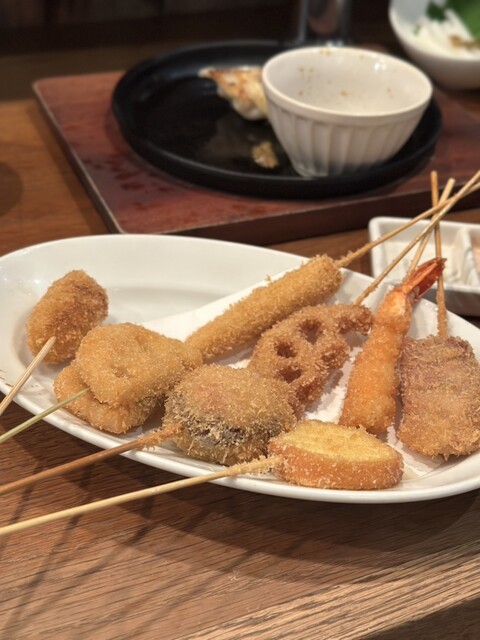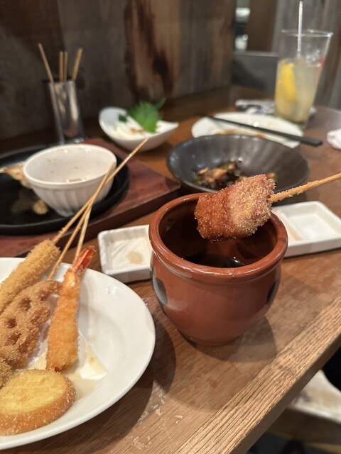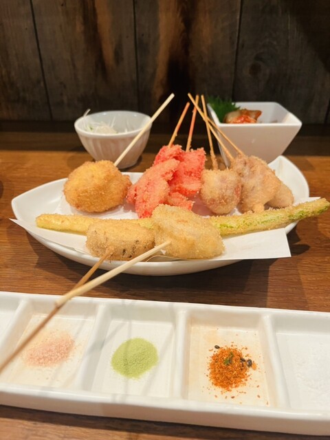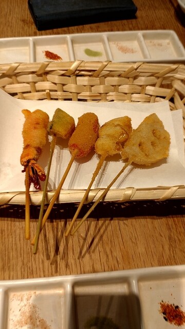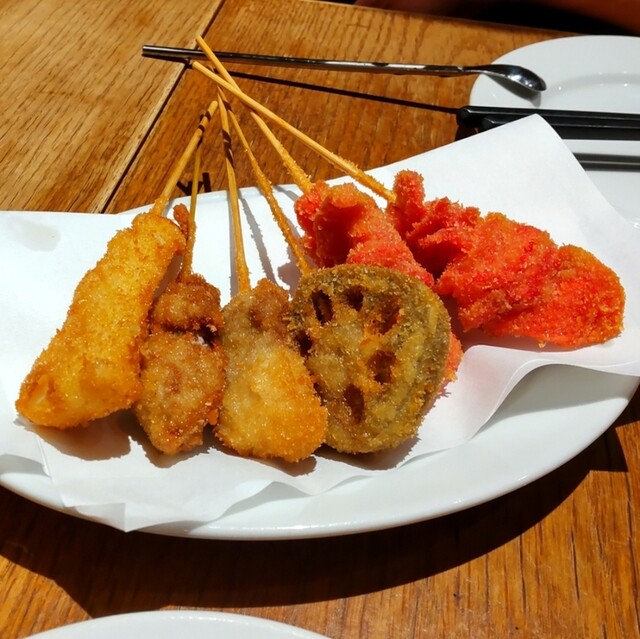 此方の売りは串揚げ日本一宣言として肉、野菜、海鮮、創作等40種類以上の豊富なメニューが5...