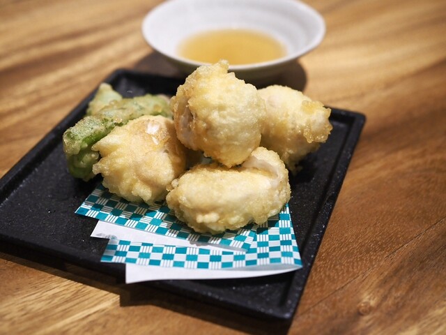 フードは二軒目だったので軽くしかいただきませんでしたが、おそらく季節限定メニューの「ふぐの白子天ぷら」が美味しくてびっくり!