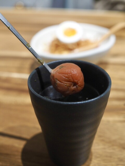 ちょっと肌寒い日だったので梅干し焼酎のお湯割りを頼んだのですが、中の焼酎を麦・芋・米から好きなものを選べるところもグッドでした。