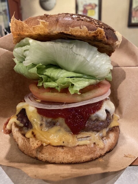 炭火でジューシーに焼き上げたパティと、こんがり焼いたバンズ、自家製のケチャップで作り上げたハンバーガーや、サンドイッチを提供しています。