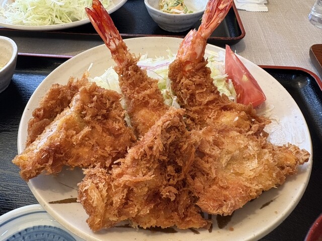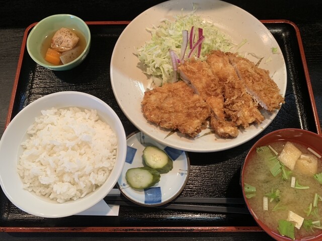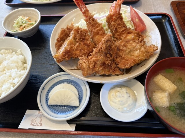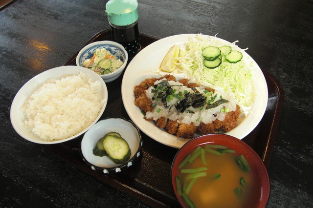 当店の一番人気は上ロースとんかつです。 大きくてボリュームたっぷり!できあがりに「おーっ!」とみなさんびっくりされています。 またテレビに取り上げられた『おろしとんかつ』をはじめ、『メンズセット』『レディースセット』大きいエビフライなどいろいろなセット取り揃えております。 夜にはおつまみもご用意しておりますので、ご家族さまだけではなく、会社帰りのかたもお立ち寄りください!