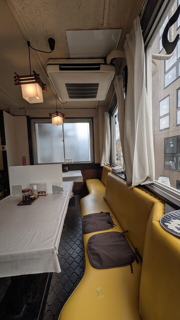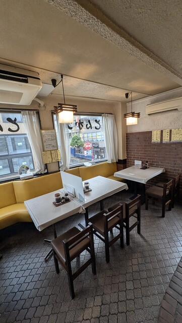 三軒茶屋駅から徒歩3分ほど。茶沢通り沿いの小さな階段を上がった先にある「とらや」は、昔ながらの雰囲気が残る老舗のとんかつ屋さん。年季の入った暖簾とレンガの外壁が目印で、2階に上がるとまるで昭和の食堂にタイムスリップしたような温かみのある空間が広がっています。黄色いソファ席や木の椅子が並ぶ店内は、どこか懐かしく落ち着く雰囲気です。