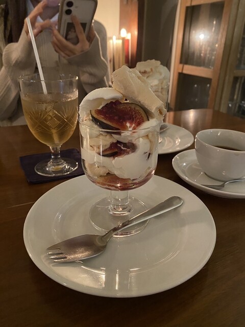 店内は落ち着いた照明と静かな音楽で夜のひとときに合う雰囲気。季節の果物を使ったデザートは写真映えし...