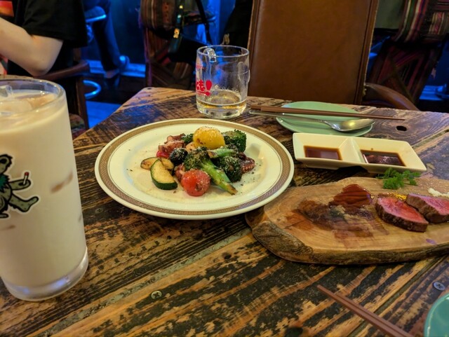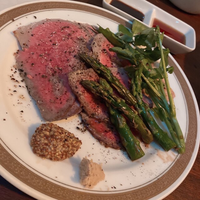 料理のローストビーフはとても美味しくでペロリと食べちゃいました。あっという間に2時間経ってしまいました。お店の玄関は自販機になってるので、初めての方は迷わないでね。