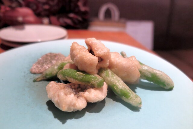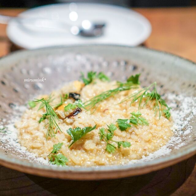 シェフは代々木上原の“Gris”で腕を振るわれていた方です。店内はウッディでナチュラルな感じでセンス良き空間。
