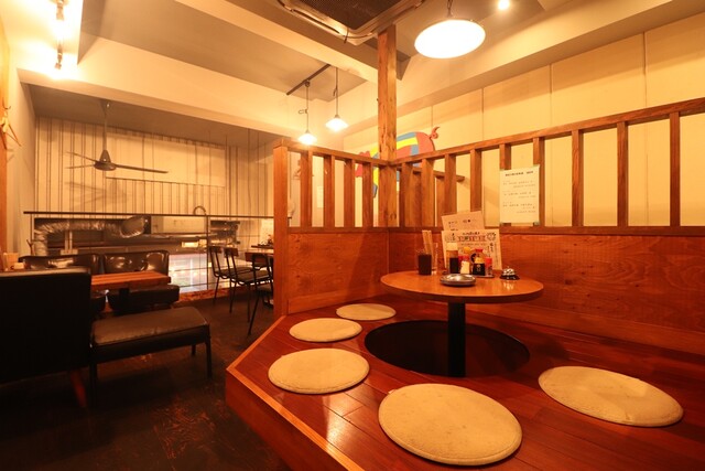 | 空間・設備 | オシャレな空間、落ち着いた空間、カウンター席あり、ソファー席あり、座敷あり、掘りごたつあり、オープンテラスあり、スポーツ観戦可 |