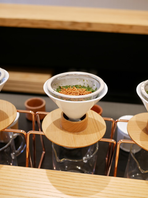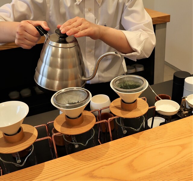 お茶をドリッパーで目の前で淹れていただけます。