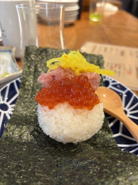 ◯訪問日時:19:00(ディナー) ◯人数:2人 ◯予約:あり(予約は取りやすかったです) 事前に予約をして訪問しました。店内はカウンター席とテーブル席があり、落ち着いたアットホームな雰囲気。ゆっくりと会話を楽しめる居心地の良い空間でした。 ⭐️注文品 ・おむすび(いくら/トロたく) ・金生姜とベーコンのポテト ・寒ぶり刺身 ・肉焼売 どのお料理も本当に美味しくて大満... 詳細を見る