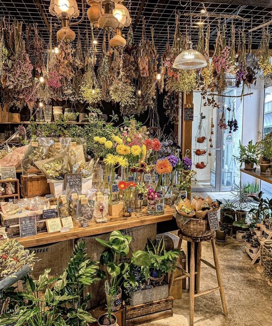 フラワーショップが同空間に併設されており、お洒落な外観が目を引く、「ジュウニブンベーカリー三軒茶屋店」。