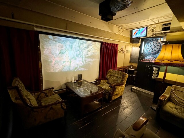 | 空間・設備 | オシャレな空間、落ち着いた空間、席が広い、カウンター席あり、ソファー席あり、カラオケあり、ダーツあり、スポーツ観戦可、プロジェクターあり、無料Wi-Fiあり |