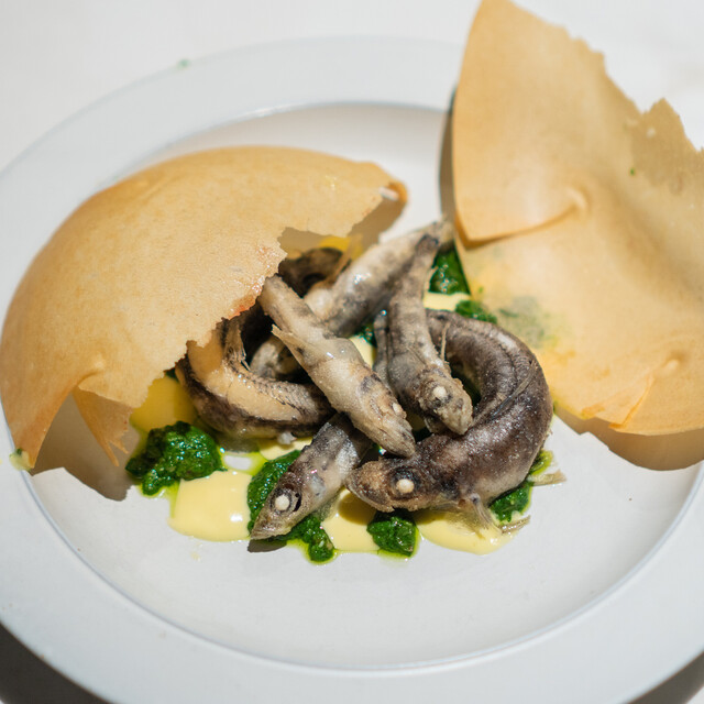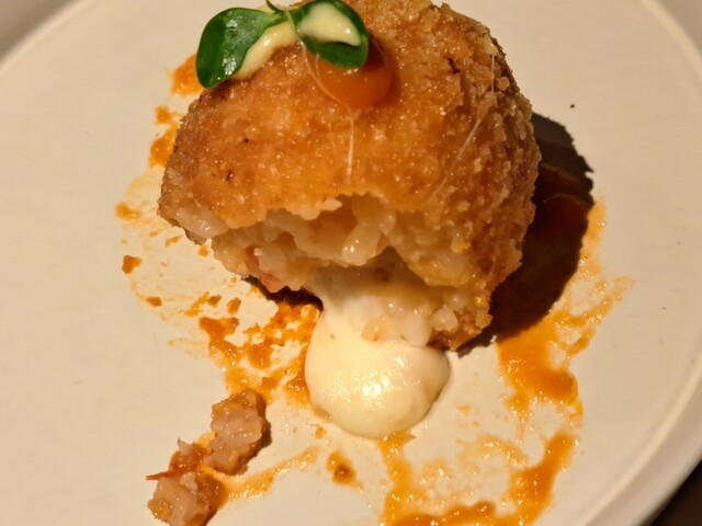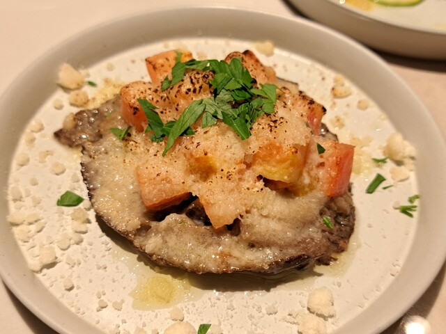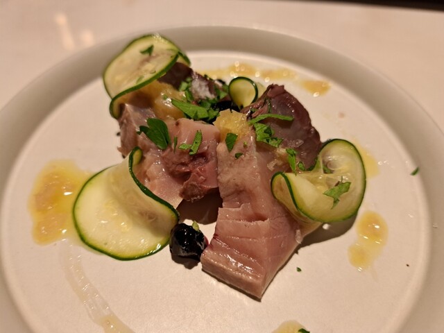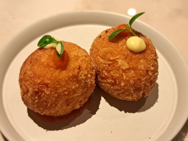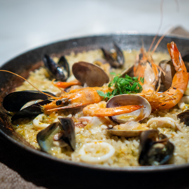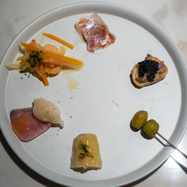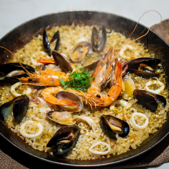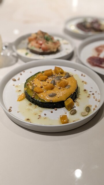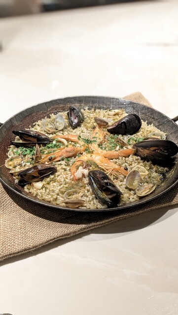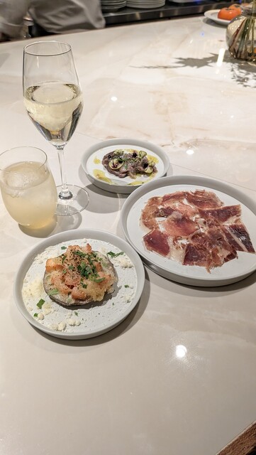 再 訪(25.7月) 3ヶ月ぶりの再訪。初めてコースにしてみたが、コスパは良いもののアラカルトの方が満足度は高い。今回のハイライトは海老とムール貝のパエージャ。 ◆今回のお品書き 7品 7000円コース タパス盛合わせ:オリーブ串、アオリイカ 昆布ジュレ 海ぶどう ワンスプーンで、カマスのエスカべッシュ、イベリコベジョータ 前菜:甘海老のカルパッチョ エンダイブ ビスクソース ... 詳細を見る