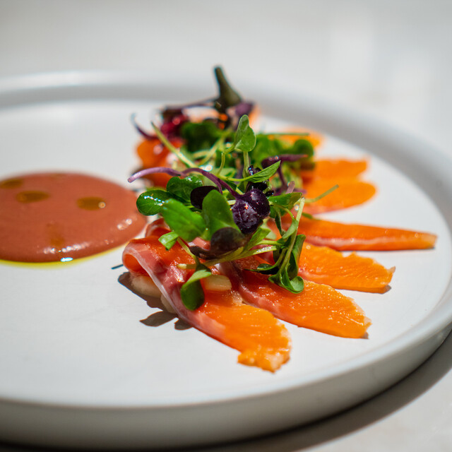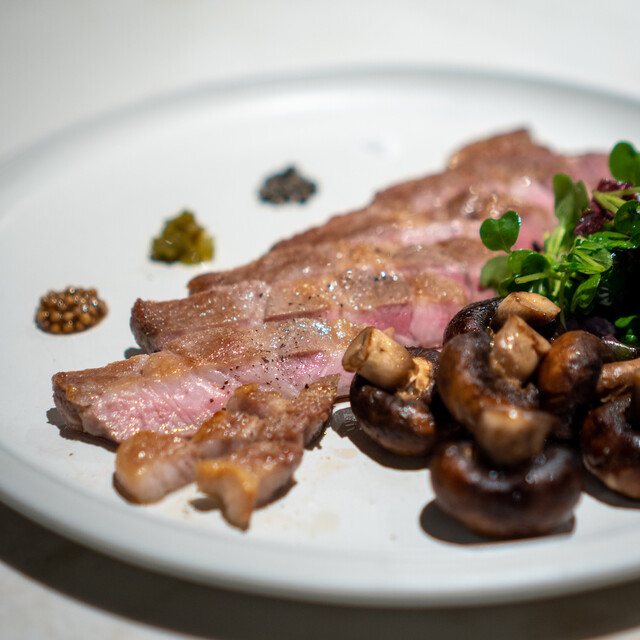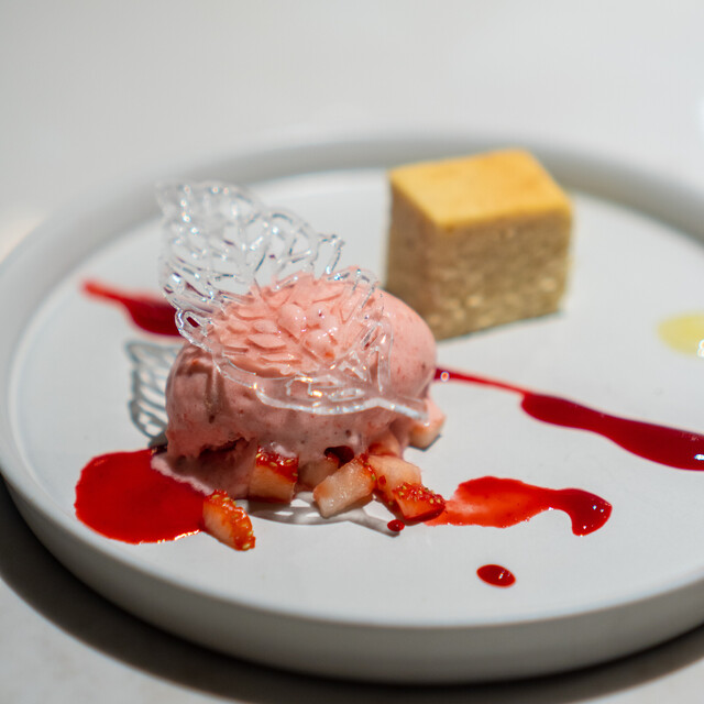キッチンの隣のダイニングで味見をするかのように出来立ての料理を。知見を活かした様々な調理法で素材を活かす。街の喧騒とは離れた非日常的な雰囲気の中でお酒と料理を楽しむ時間。お皿を彩る料理達に楽しさが膨らむような、お招きしたゲストの喜びを想像して私達も喜んで料理を提供します。