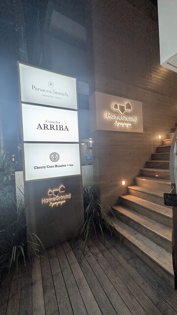 三軒茶屋駅から徒歩3分ほど、茶沢通り沿いの「ホームグラウンド三軒茶屋」2階にあるワイン食堂。温かみのあるライトと木目のテーブルが印象的で、高級感がありながら肩肘張らない大人の雰囲気です。カウンターとテーブル席があり、デートにもグループにも使いやすい空間。