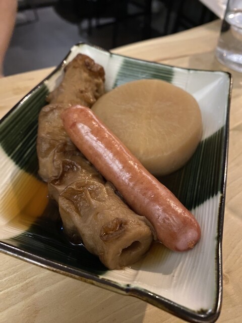 この日は人気メニューの大根、だし巻き卵、ソーセージをいただいた。