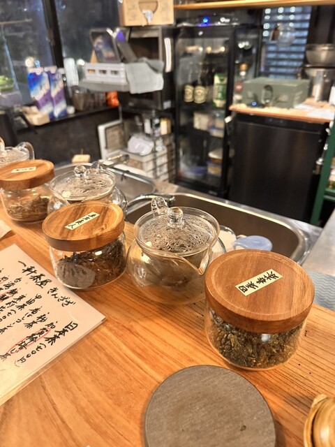 兄が厳選した日本茶や台湾茶、中国茶など約10種類のお茶を使ったお茶割り。珍しい“漬け込み酒”をはじめ、お酒を控えている方はお茶だけのご利用も◎。弟が手掛ける料理と内装も魅力。