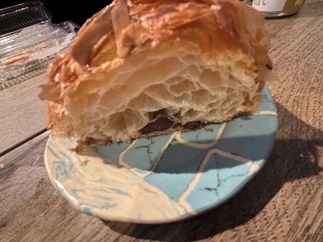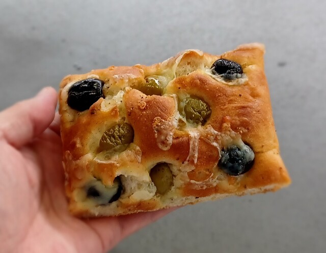 夕方ごろに伺ったところ、人気のクリームホーンは売り切れで、ラスト一個残っていた季節野菜とアンチョビのフォカッチャ、あとはクロアソンを買いました。