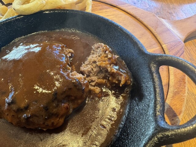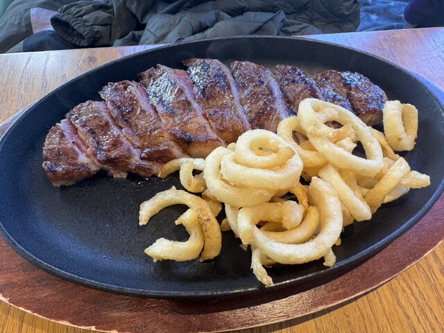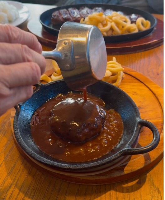鉄板でジュッと音を立てて運ばれてくるステーキは、まず香りがいい。