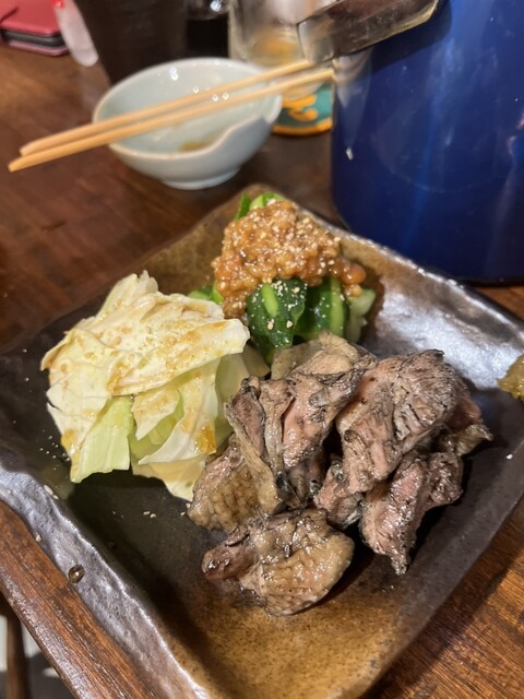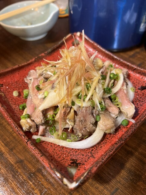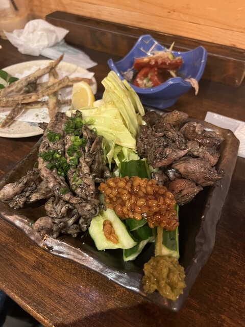 犬が一緒に入れる居酒屋さんはなかなかないから嬉しい^_^ 最近は宮崎に全然行ってないけど基本的には宮崎料理は好きです。 地鶏の炭火焼き、セセリ炭火焼きを注文! 地鶏は少しコリコリな食感で柚子胡椒つけて美味しい。 セセリもレモン絞っていい感じでした。 地鶏のタタキも美味しかったけど新鮮な感じはしなかったな。 しかし夏はこの店暑いなw レゲエかかってエアコンないからジャマイカでもイメージ... 詳細を見る