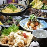 炭火で地鶏モモ焼き、炭火でセセリ焼き、もろキュウ、やみつきキャベツ、キムチ冷奴、チャーハンなどが付いた、自慢の人気コース♪ ※ラストオーダーは30分前となります。
