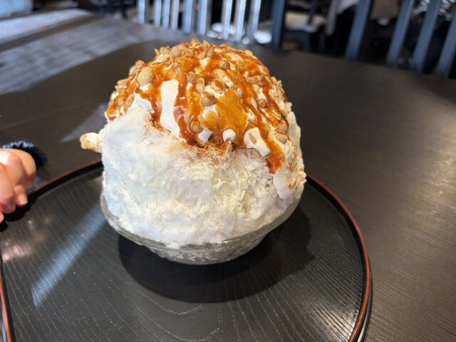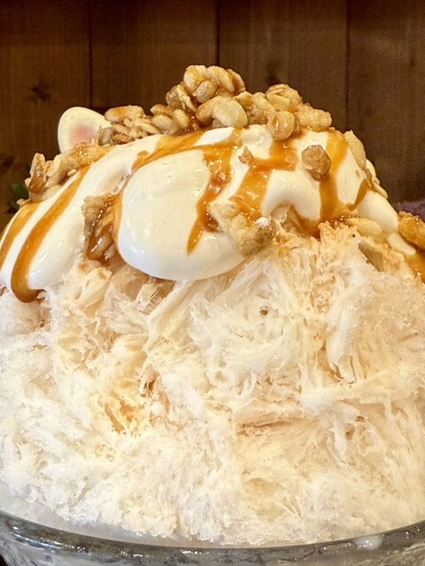 キャラメル系のかき氷をいただきました。氷はとてもふわっとしていて口どけがよく、食べ進めても重たさを感じません。キャラメルの甘さもほどよく、全体のバランスがきれいでした。