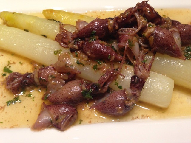 ホワイトアスパラガスとホタルイカのコンフィ (by お店)