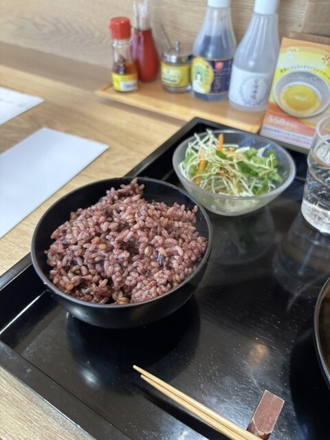 今年に入って3回目の訪問です。 メニューが3種類限定に変わっていました。平日は違うのかな? 〇豊受野菜入り海鮮あんかけ丼ぶり昼膳 サラダ、漬物、汁もの付 1080円 写真を観ての通り、とにかく彩りがいいです。見ているだけで身体が元気になりそうな感じです。海鮮あんかけ丼は大きな器に入って出てきまして、なんだか量が少ないような・・・と思っていましたが、食べてみると底が深いので食べ応え... 詳細を見る